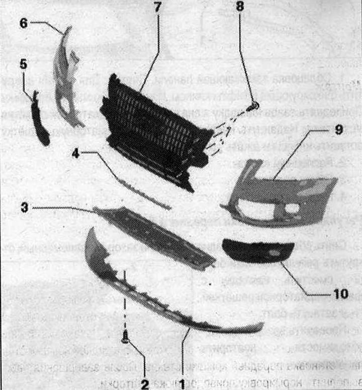 Для демонтажа отдельных деталей следует полностью снять накладку бампера.