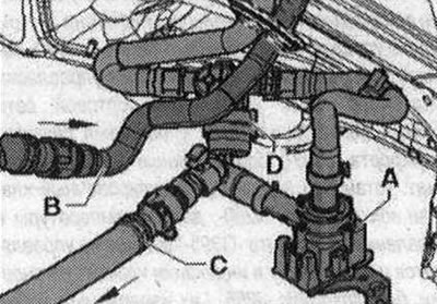 Инструкция. В зависимости от исполнения панели управления и индикации климат, установки, блок управления Climatronic «J255» может обозначаться насосом циркуляции ОЖ «V50» в ведомом поиске неисправностей, а также водяным насосом «V36». На а/м с 4-цил. двигателем и доп. комплектацией "системой запуск/остановка", но без доп. компл. "автономным отопителем" устанавливается («V50») «V36». Управление «V50» («V36») зависит от компл. и даты производства а/м. Для а/м с 4-цил. двигателем и доп. комплектацией "системой запуск/остановка", но без доп. компл. "автономным отопителем" насос циркуляции ОЖ «V50» («V36») «А» устанавливается, например, в область между двигателем и передней стенкой водоотводящего короба. На этом рисунке показано расположение для Audi А4 с 4-цил. двигателем TFSI 2010 модельного года. В зависимости от двигателя, типа а/м и времени производства насос циркуляции ОЖ «V50» (водяной насос «V36») «А» также может быть установлен и в другом месте (например, в водоотводящем коробе). При работающем «V50» («V36») ОЖ всасывается через шланг подачи ОЖ «В» (из мотора через теплообменник климат, установки и запорный клапан ОЖ «D») и через шланг подачи ОЖ «С» обратно направляется в двигатель (учесть направление движения «стрелки»).