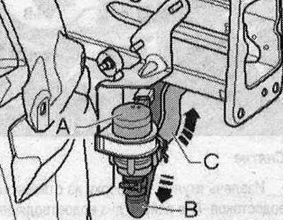 Для а/м с 6-цил. двигателем FSI (в 6-цил. двигателе TFSI в настоящее время не предусмотрено) и в других двигателях с доп. комплектацией (напр., в а/м с "системой запуск/остановка"), но без доп. компл. "автономным отопителем"устанавливается «V50» насос рециркуляции ОЖЛ/36-. Управление «V50» («V36») зависит от компл. и даты производства а/м. Для а/м с 6-цил. двигателем FSI без опционального "автономного отопителя" устанавливается «V50» («V36») «А», напр., в области мотора и правого лонжерона под правой фарой. На этом рисунке показано расположение для Audi А5 Coupe с 6-цил. двигателем FSI, на Audi Q5 имеются отклонения от этого расположения дета-лей/узлов. При работающем «V50» («V36») ОЖ всасывается через шланг подачи ОЖ «В» (из двигателя) и направляется через шланг подачи ОЖ «С» на теплообменник в кондиционере (учитывать «стрелки» направление движения).