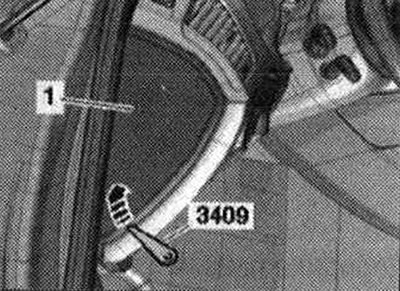Приподнять декоративную накладку «1» передней панели клином для демонтажа «3409» «стрелки» и снять ее.