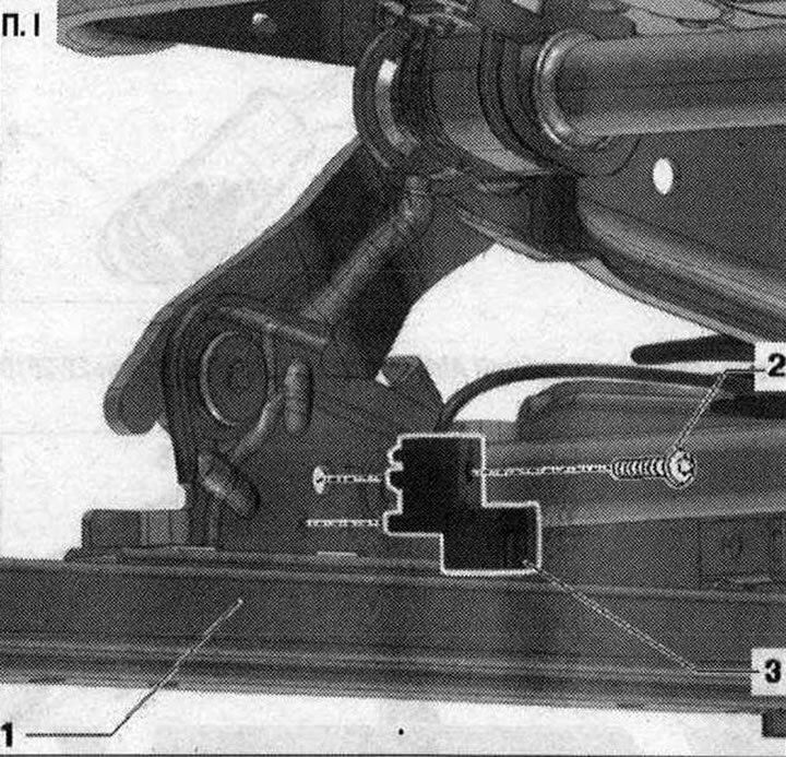I 1. Нижний каркас углубления; 2. Болт. 1,3 Н·м; 3. Датчик положения сиденья со стороны водителя с датчиком положения сиденья водителя «G553». Со стороны переднего пассажира с датчиком положения сиденья переднего пассажира «G554»