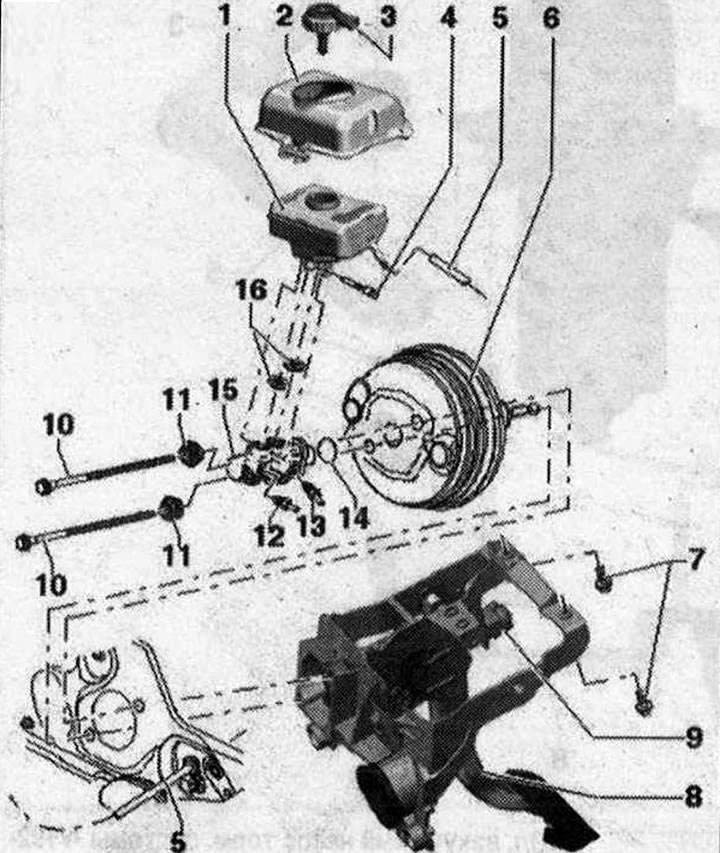 Снять главный торм. цилиндр с усилителя тормозов. Извлечь главный торм. цилиндр из а/м. Тормозная жидкость не должна попасть в усилитель тормозов.