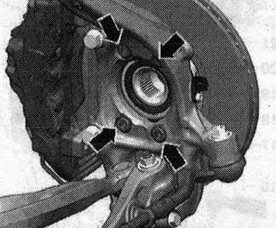 Установка в обратном порядке. При этом нужно учитывать моменты затяжки. Установить приводной вал. Затянуть колесо. У а/м с автомат, корректором фар выполнить базовую установку фар. После снятия и установки датчика уровня а/м или ослабления тяг на а/м с системой электронного регулирования демпфирования следует заново настроить стандартное положение подвески. После повторной адаптации положения регулировки на а/м с ассистентом движения по полосе следует выполнить повторную калибровку блока управления ассистента движения по полосе «J759».