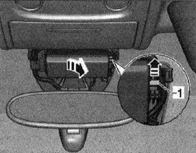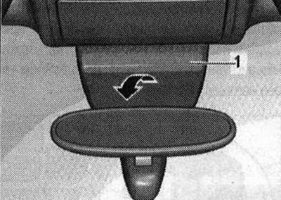 Снять шторку «1» с кронштейна «в направлении стрелки» вниз