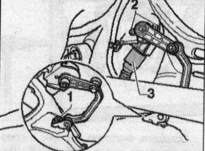 Устанавливать датчик только такого же исполнения. Соответствующим образом обработать и установить запасную часть. Ввернуть болты «2». При этом не повредить крепежную пластину. При затяжке винтов «2» удерживать датчик уровня а/м. Рычаг датчика должен быть обращен наружу. Ввернуть болт «1». Подсоединить штекерный разъем «3». Выполнить базовую настройку фар. После снятия и установки датчика дорожного просвета или открепления тяг на а/м с системой электронного регулирования демпфирования следует зан адаптировать положение регулировки. После повторной адаптации положения регулировки на а/м с ассистентом движения по полосе следует выполнить повторную калибровку блока управления ассистента движения по полосе «J759».
