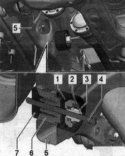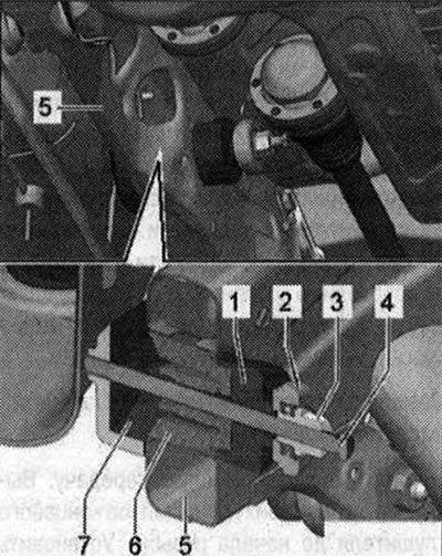 Вставить опору в подрамник, при этом поворачивать гайку «3346/3» и удерживать шпиндель «Т40185/9». Если после замены сайлент-блоков возникли повреждения на лакированной поверхности подрамника, их необходимо устранить при помощи антикоррозийного покрытия, грунтовки и черной краски.