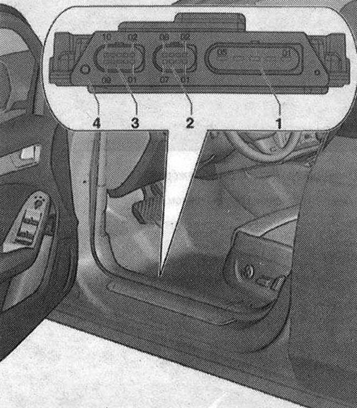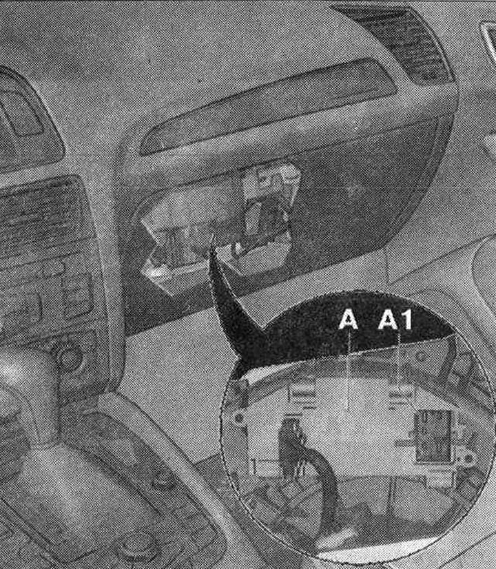 Место установки: В пространстве для ног переднего пассажира, за перчаточным ящиком.