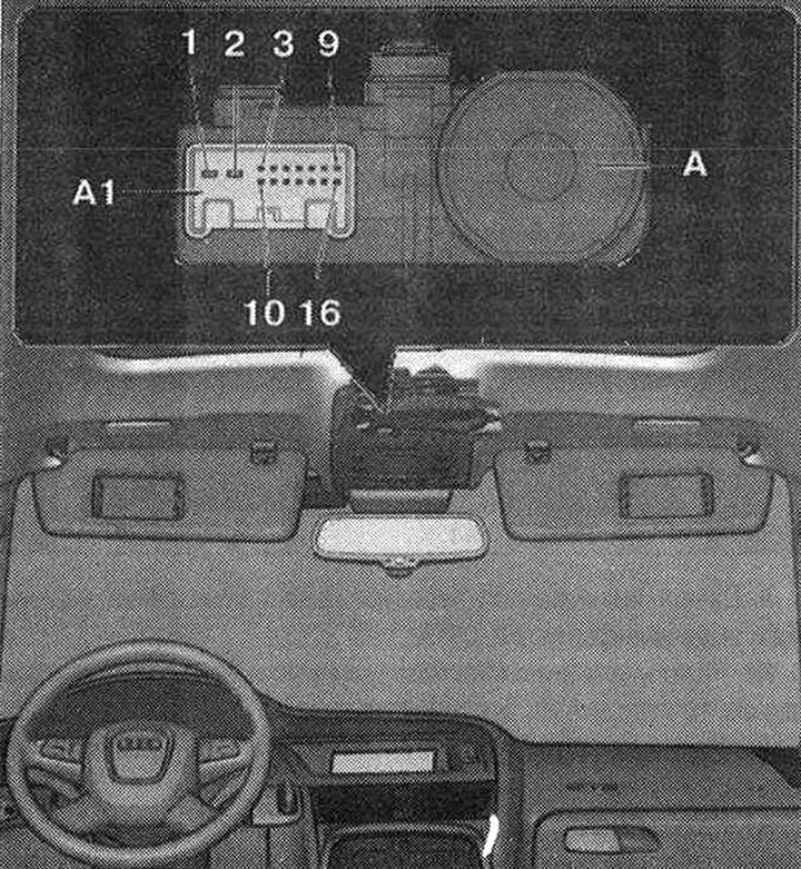 Место установки: В центральной части передней панели. Штекерный разъем «А1» представлен в качестве примера для различных вариантов компл.!