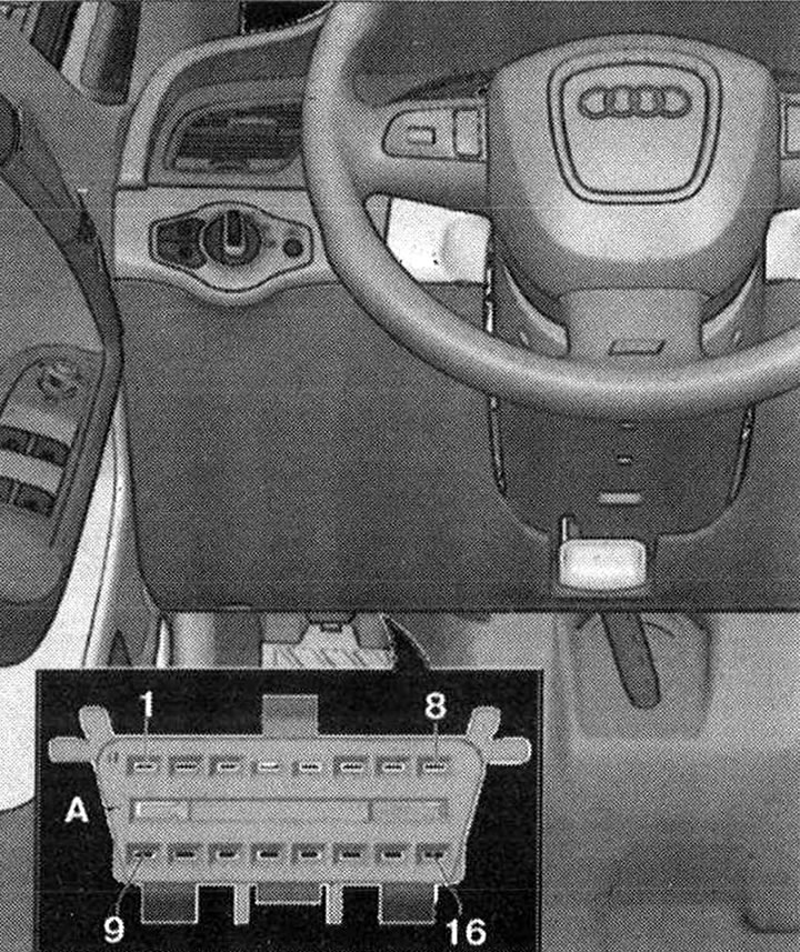 - А. Штекерный разъем, 16-контактный «Т16», диагн. разъем