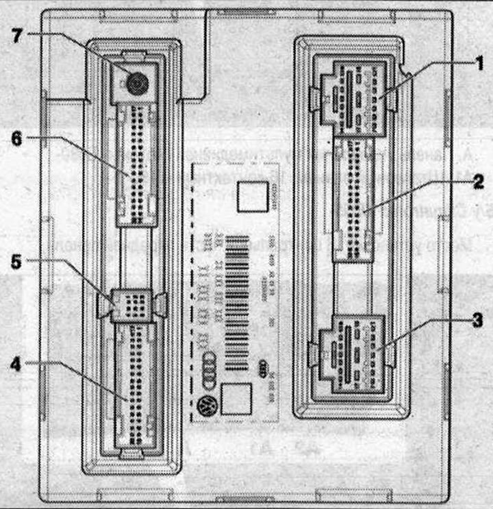 - А1. Разъем для а/м с MMI high до августа 2009 г.: Штекерный разъем, 22-контактный, черный «Т22b»