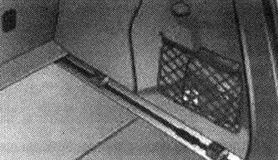 Подушка для перевязки расположена за правой сеткой для хранения в багажнике. При необходимости сетку для хранения на боковых направляющих можно сложить вниз.