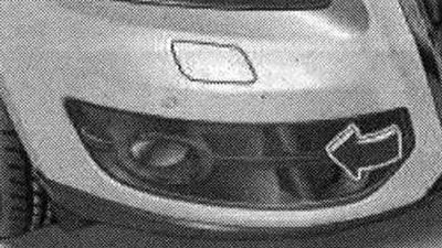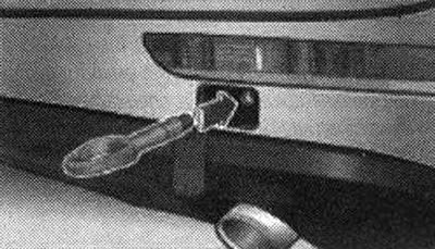 Извлечь входящую в комплект инструмента буксирную петлю. Для извлечения колпачка из бампера резко и сильно отжать его нижний край крышки внутрь. Ввернуть буксирную петлю до упора в резьбовое отверстие.