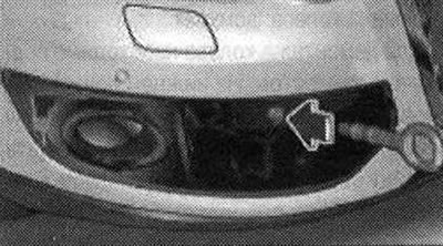 Передняя буксирная петля монтируется только при необходимости. Резьба для буксирной петли расположена под крышкой справа спереди на бампере. Извлечь входящую в комплект инструмента буксирную петлю. Аккуратно снять крышку в направлении стрелки. Ввернуть буксирную петлю до упора в резьбовое отверстие. После использования вывернуть буксирную петлю и положить ее в комплект инструмента. Буксирная петля должна всегда находиться в а/м. При завершающей установке крышки проследить, чтобы ее выступы вначале вошли в крепления рядом с решеткой радиатора. Затем установить противоположную часть крышки и вдавить ее в крепления. Если буксирная петля ввернута не до упора, то при буксировке возможен срыв резьбы - опасность аварии!