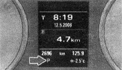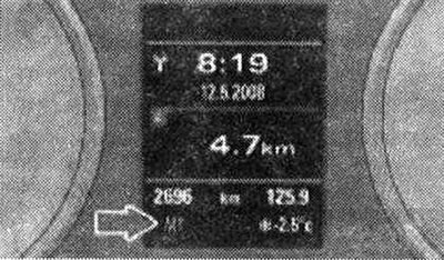 Актуальное положение рычага переключения передач и выбранная передача отображаются на дисплее приборной панели.