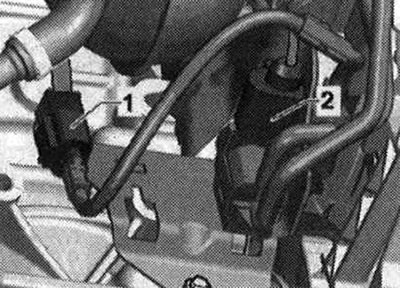 Детали 1. Регулятор давления топлива «N₂76»; 2. Электродвигатель изменения геометрии впускного коллектора «V183»
