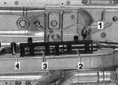 Дополнительный топл. насос «V393» 1. Разъём доп. топл. насоса «V393» (Может быть установлен в разных местах); 2. Топливный фильтр; 3. Дополнительный топл. насос «V393»; 4. Клапан подогрева топлива