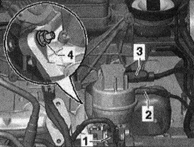 Снять вакуумный шланг «1». Выкрутить болты «2» и «4».