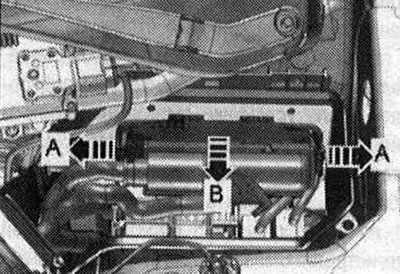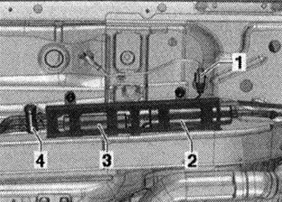 Дополнительный топл. насос «V393» 1. Штекерный разъем доп. топл. насоса «V393» (место установки может отличаться); 2. Топливный фильтр; 3. Дополнительный топл. насос «V393»; 4. Клапан подогрева