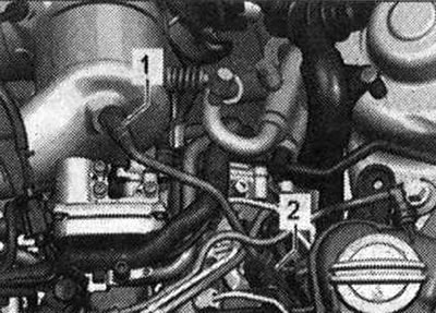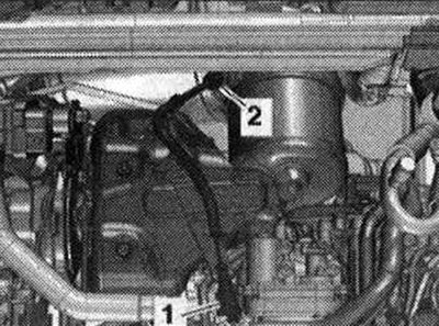 Место установки лямбда-зонда «G39» 1. Лямбда-зонд «G39»; 2. Штекерный разъём Лямбда-зонда «G39»