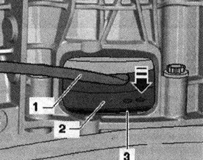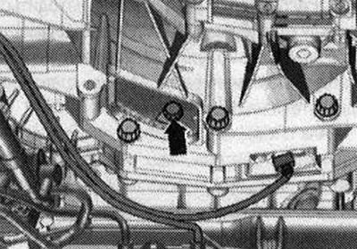 - 3. Фиксатор КП для подушки двигателя. При дефектной подушке двигателя заменить крепежный щиток. Проверить крепежный щиток с противоположной стороны, при необходимости, заменить
