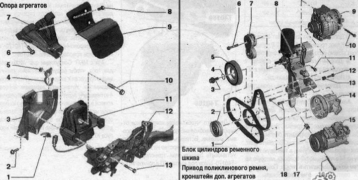 - 11. Опора двигателя с эл. магн. клапаном левой электрогидравлической опоры двигателя «N144» (только слева). Заменять только попарно