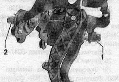 - 2. Датчик положения педали сцепления «G476» с датчиком положения педали сцепления для пуска двигателя «F194» и датчиком положения педали сцепления «F36» (только в а/м с МКП)