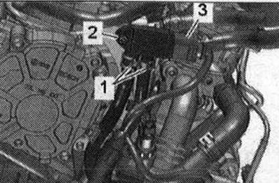 На опоре двигателя слева «стрелка», (эл. штекерное соединение).