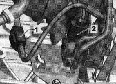 - 1. Штекерный разъем датчика количества оборотов двигателя «G28»