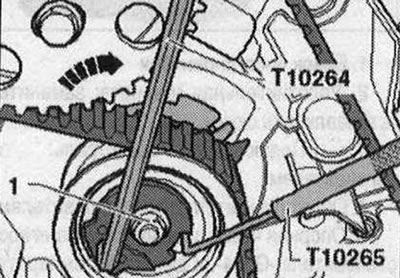 Снять зубчатый ремень с обводного ролика и насоса высокого давления.