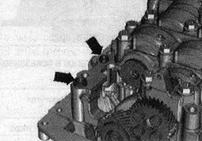 Установка в обратном порядке, учитывать следующее. Заменить уплотн. кольцо круглого сечения. Заменить поврежденное или растянутое стопорное кольцо. Стопорное кольцо должно прилегать в основании паза. При отсутствии в масляном насосе центровочных втулок «стрелки» установить их.