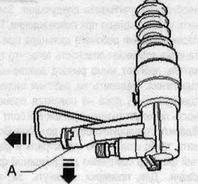 Разблокировать стопорную скобу «А» отверткой и извлечь до упора. Отсоединить трубо-шланговую магистраль.