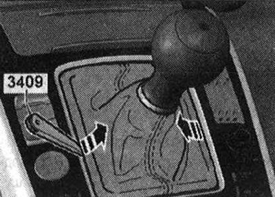 Рукоятка рычага КП снимается вместе с манжетой рычага КП. Поднять манжету рычага КП с помощью клина «3409» «стрелки» и извлечь вверх.