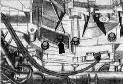 А/м с 4-цилиндровым двигателем: До конца ввернуть первый болт «стрелка» (2 Н·м). Провернуть модуль сцепления посредством передних колес на 120° в направлении вращения двигателя и закрутить второй болт от руки (2 Н·м). Вновь провернуть модуль сцепления на 120° в направлении вращения двигателя. Ввернуть и затянуть третий болт. Теперь затянуть 2 оставшихся болта с заданным моментом затяжки.
