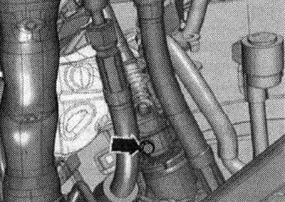 Разъединить систему выпуска ОГ, ослабив зажимной хомут «стрелки» и снять выпускную трубу.