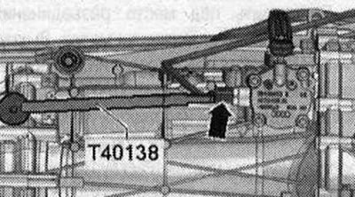 Разъединить эл. штекерное соединение «стрелка» датчика определения передачи «F208» с помощью съемника «Т40138» и высвободить электропровод.