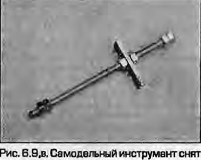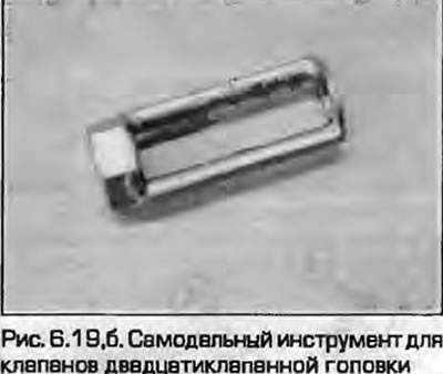 Нататка: На дваццаціклапанных рухавіках адтуліна для доступу да впускных клапанаў значна менш, чым да выпускных - стандартны кампрэсар можа апынуцца занадта вялікім Калі да прылады Audi/VAG доступу няма. можна вырабіць самаробны з прыдатнай гайкі, шайбы і металічных пруткоў, звараных разам (мал. 6.19, а, б).