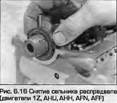16. Зніміце сальнік з распредвала і выкінеце яго, для ўсталёўкі патрабуецца новы (мал. 6.16).