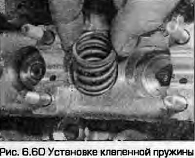 60. Надзеньце затамкавую(ные) спружыну на стрыжань клапана (мал. 6.60). На дызельных рухавіках пераканайцеся ў тым, што спружыны правільна ўстаноўлены ў ніжнім сядле.