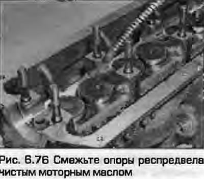 76. Вышмаруйце распредвал і апорныя паверхні ў галоўцы цыліндраў чыстым маторным маслам (мал. 6.76).