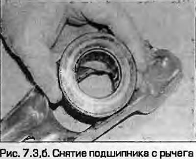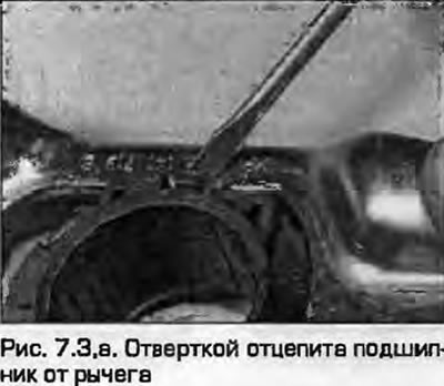 3. Адвёрткай адцісніце пластыкавыя зашчапкі і аддзеліце падшыпнік ад рычагу (мал. 7.3, а, б).