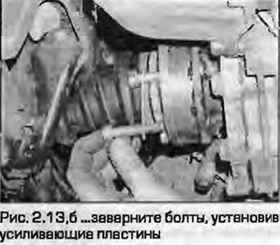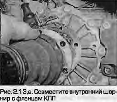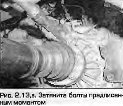 13. Сумясціце ўнутраны шарнір з фланцам КПП, пасля гэтага загарніце балты мацавання з узмацняльнымі пласцінамі (яны прадугледжаны на шарнірах шарыкавага тыпу). Акуратна зацягніце ўсе балты "ад рукі", затым, у дыяганальнай паслядоўнасці. зацягніце іх загаданым момантам (мал. 2.13, а-у). Калі неабходна, усталюеце цеплаахоўны экран на корпус КПП і надзейна зацягніце ніты яго мацавання.