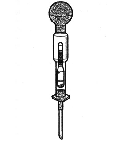 Дэнсіметр з піпеткай для адсмоктвання лішняй колькасці электраліта з акумулятарнай батарэі