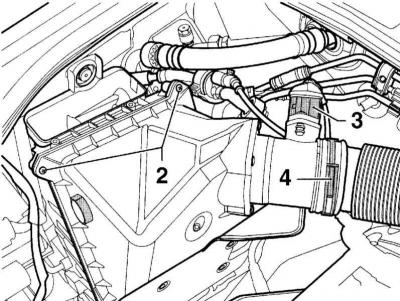 5.Нахіліце верхнюю частку паветранага фільтра ў напрамку рухавіка, адлучыце ўнізе і выньце наверх.