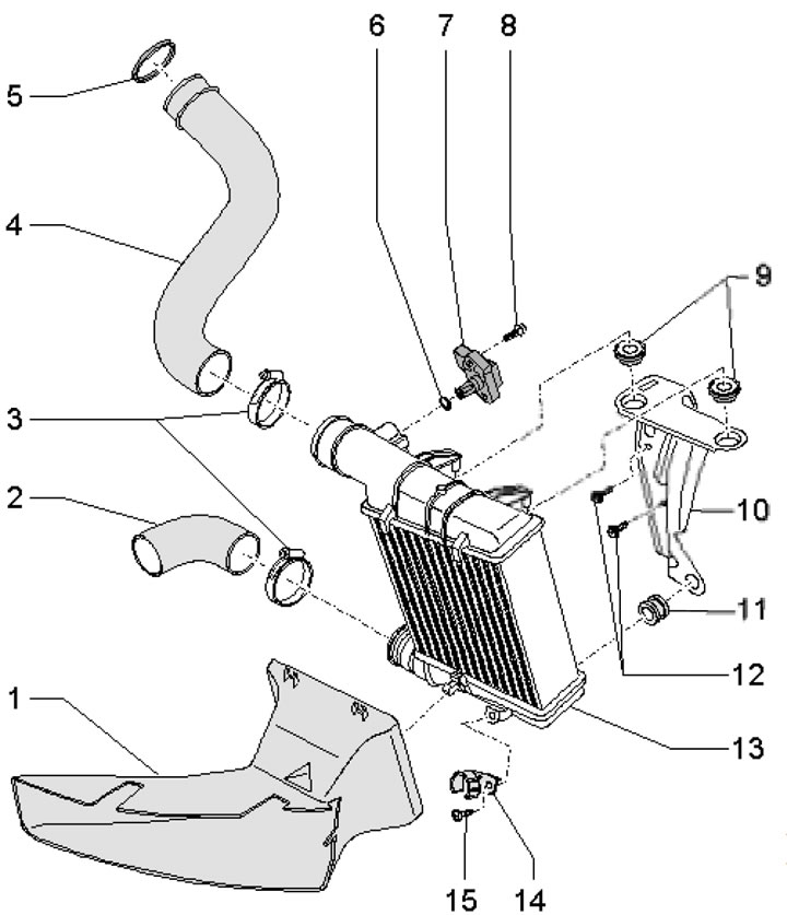 12. Дэталі ўстаноўкі интеркулера пазначаны на ілюстрацыі.