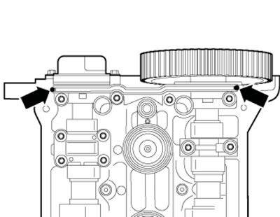 2. Вызваліце фіксатары (стрэлкі на ілюстрацыі 29.9) і зніміце верхнюю крышку рухавіка.