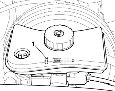 4. Вывярніце ніт мацавання рэзервуара тармазной вадкасці (гл. супр. ілюстрацыю) і раз'яднайце раз'ём датчыка нізкага ўзроўню тармазной вадкасці.