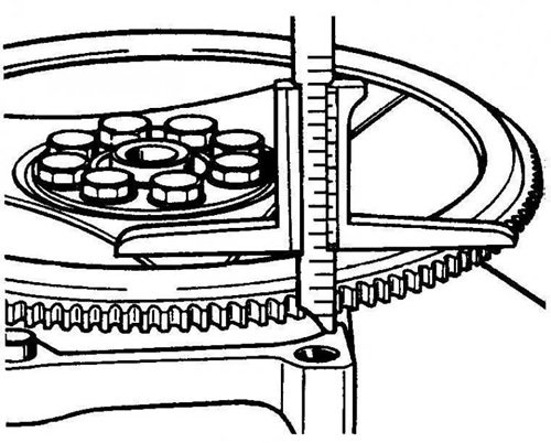 2. Калі Вы ўсталёўваеце новы махавік, на ім маецца толькі пазнака для ўсталёўкі поршня N1 у ВМТ. Вам неабходна будзе вырабіць на яго пазнаку для ўсталёўкі кута апярэджання запальвання (а = 36,5 мм).