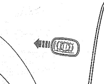 24. Націсніце на рассейвальнік бакавога паўтаральніка паказальніка павароту ў напрамку, паказаным стрэлкай на ілюстрацыі, і акуратна выміце яго з мантажнай адтуліны на крыле.