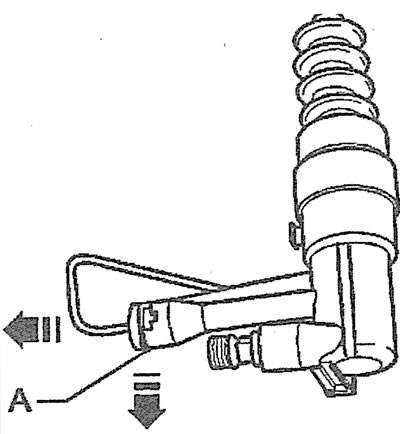 8. Адлучыце ад працоўнага цыліндру счаплення трубаправод, пераціснуўшы папярэдне шланг на ім падыходным заціскам і зняўшы заціск А (гл. ілюстрацыю).