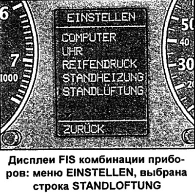 - Такім жа чынам з дадзенага меню выбралі меню STANDHEIZUNG (аўтаномны ацяпліцель) або STANDLOFTUNG (аўтаномны вентылятар).